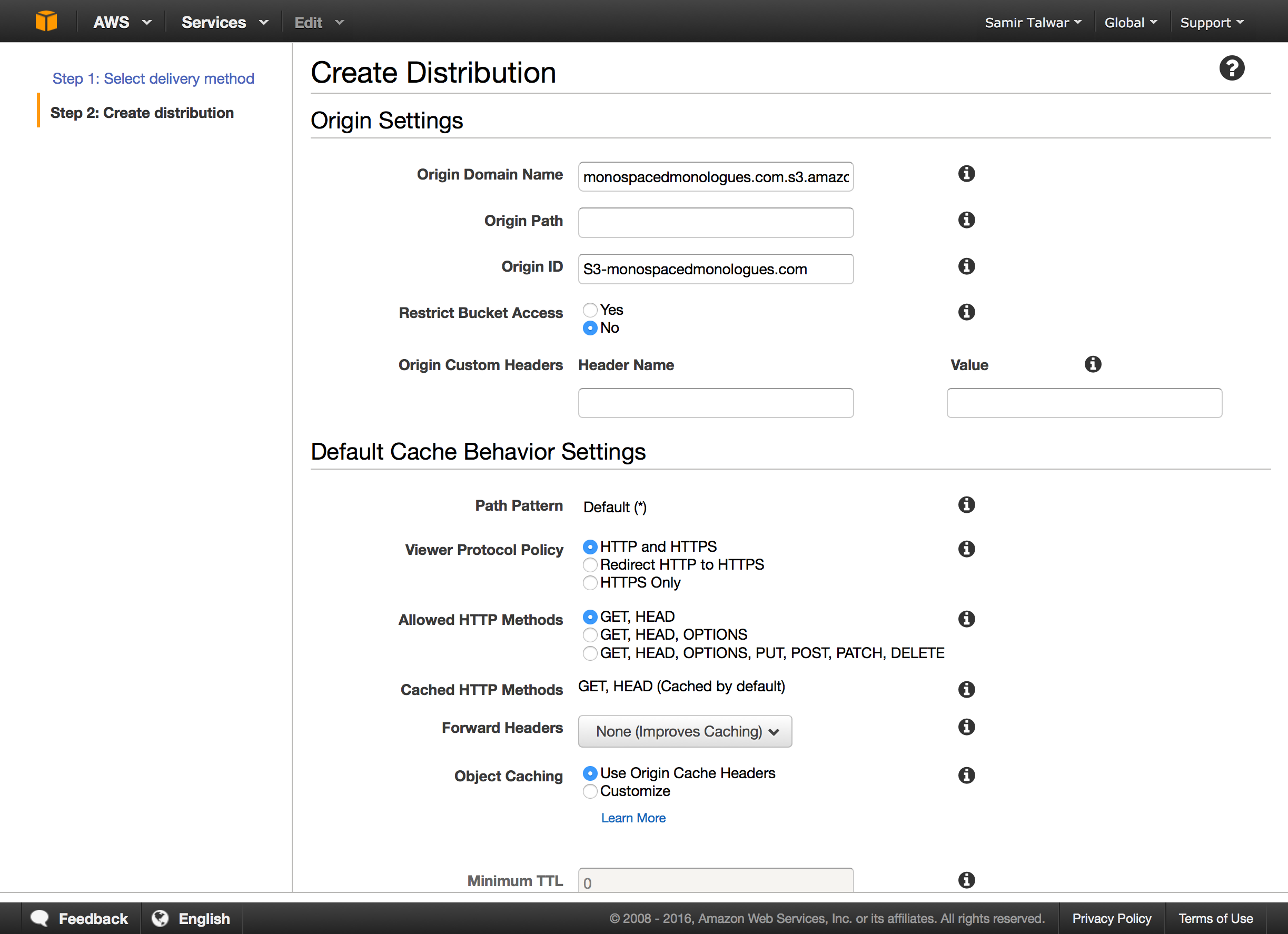 First of all, pick your domain. A subdomain of your website is probably good enough. I've selected "assets.monospacedmonologues.com" for mine.