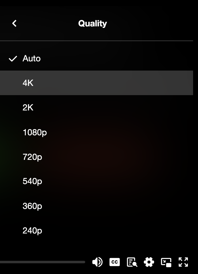 Video quality can be adjusted from 240p all the way up to 4K.