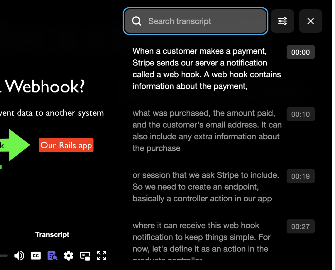 You can also search a full text transcript and skip to a particular section quickly.