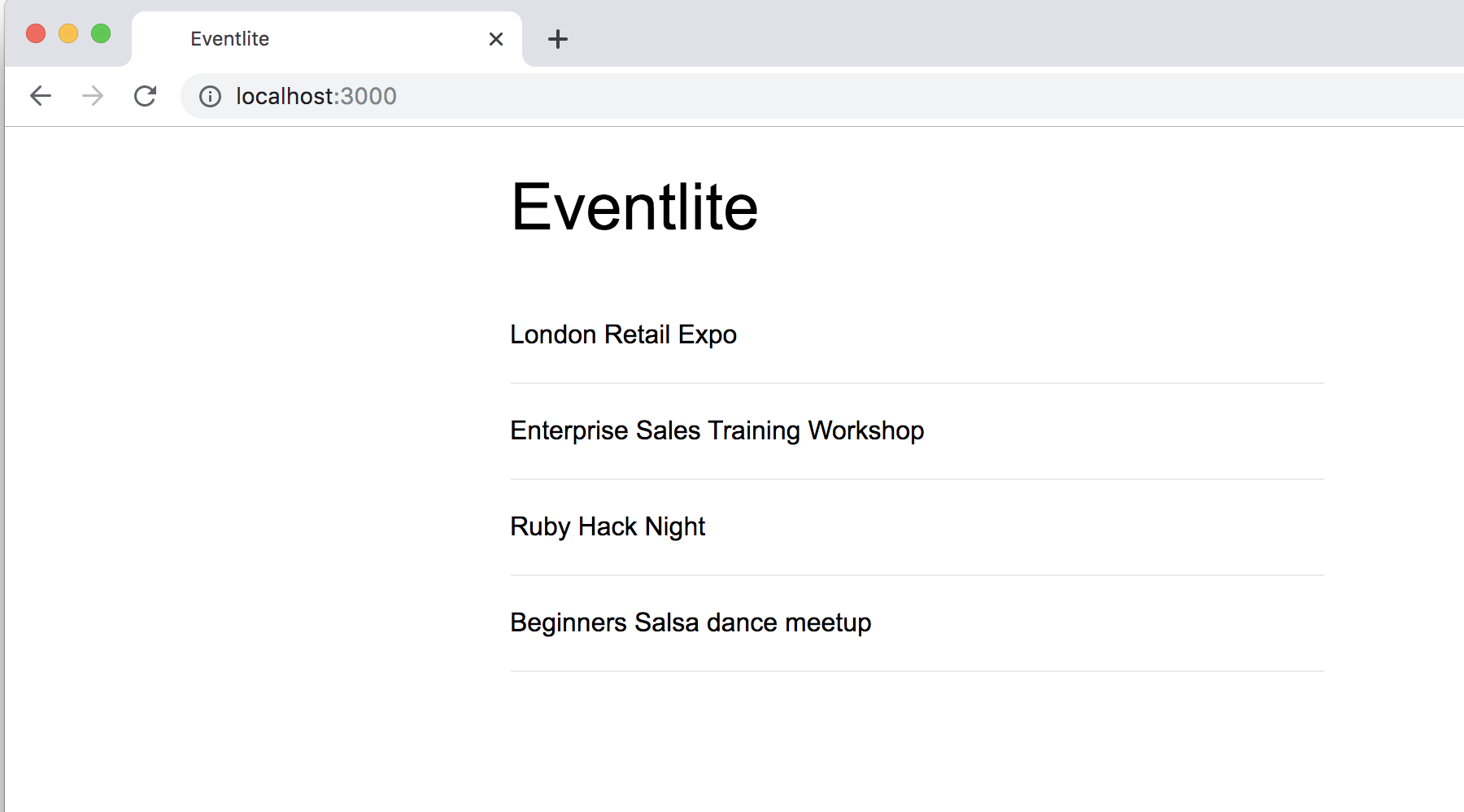 Let’s create a new component called Eventlite for our app in app/javascript/packs/Eventlite.js: